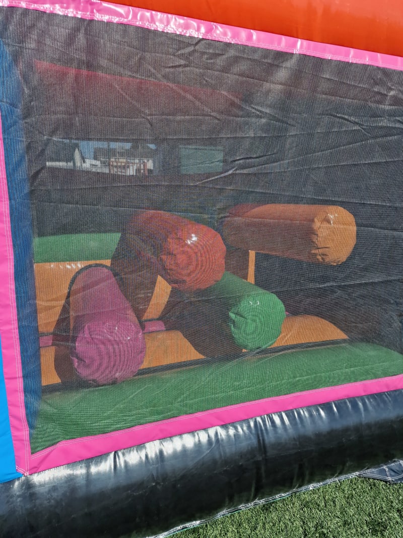 With plenty to do inside, this assault course starts with two holes to enter through, whilst inside navigate and clamber over, under and around bars, bish bashes and standing X’s then scramble up the steps and slide down to the finish.